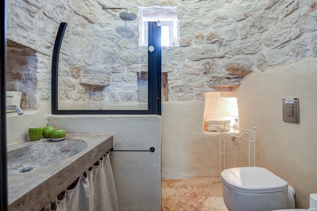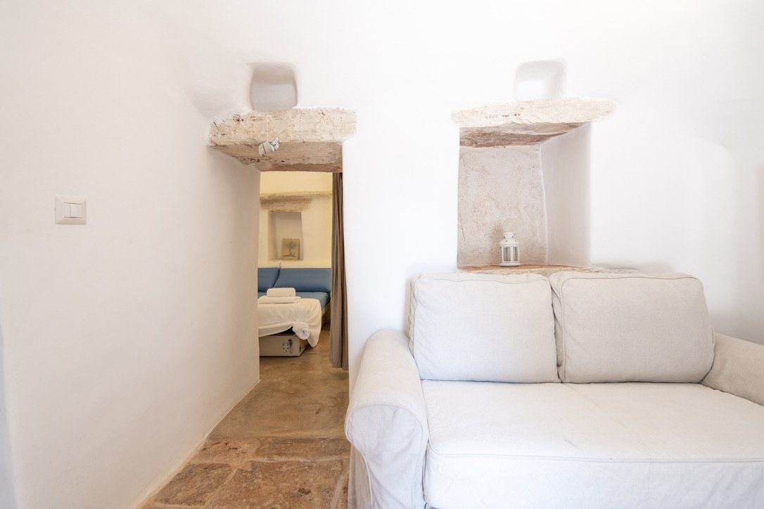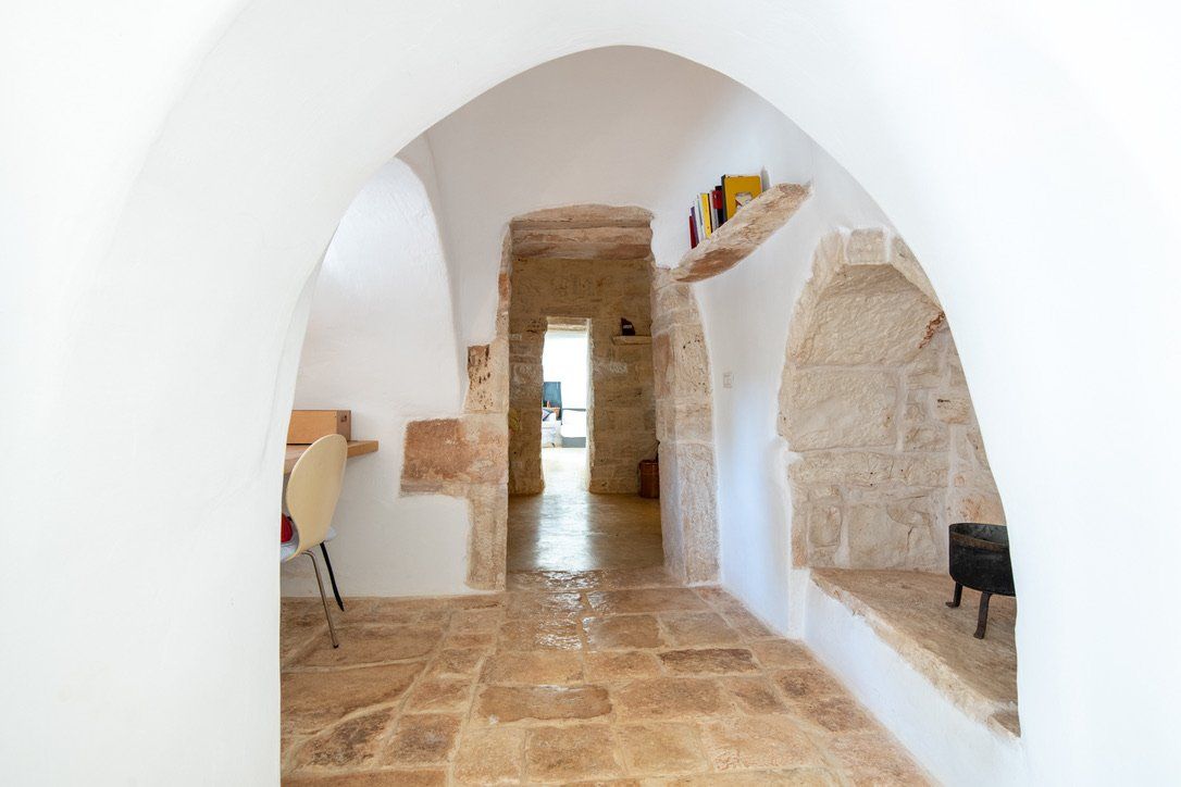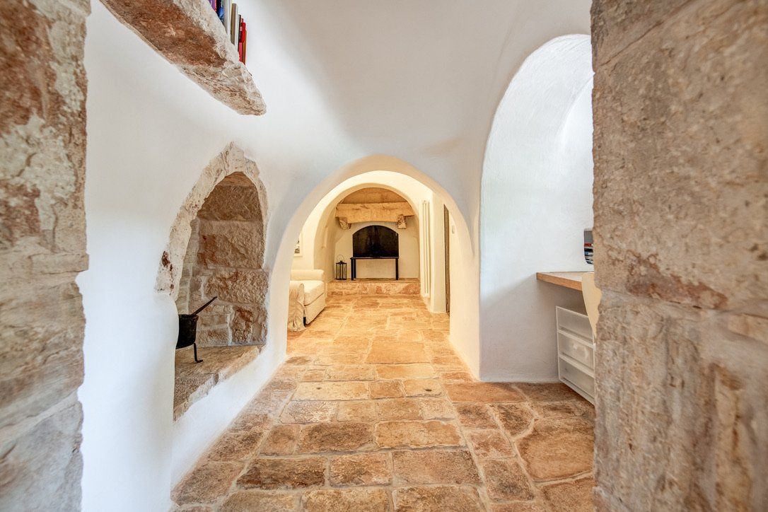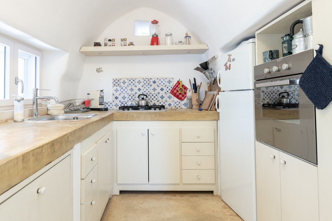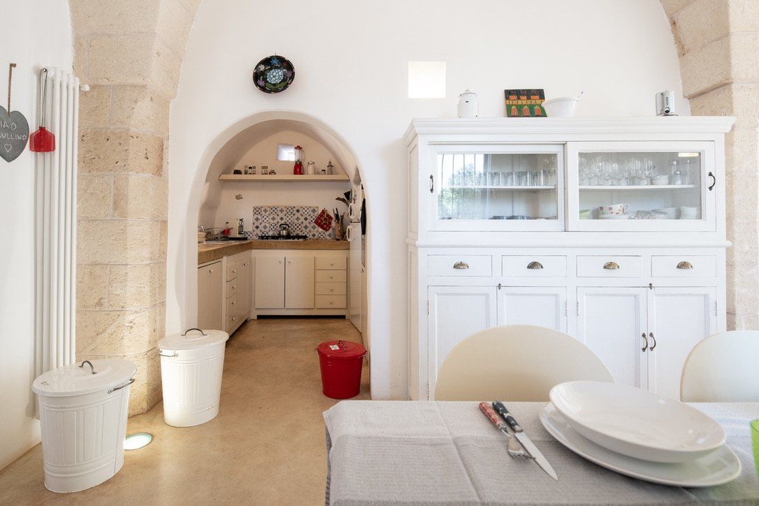 - een oude en gerenoveerde, bestaande uit een trullo met 6 kegels en een lamia met een sterrenplafond, een steenoven (bruikbaar) en een grote externe berging; dit deel omvat een slaapkamer met tweepersoonsbed, een slaapkamer met een eenpersoonsslaapbank (120×200 cm), een studeerkamer, een badkamer met douche, wastafel, toilet en bidet, een kamer aan de voorzijde met een eenpersoonsslaapbank, een grote eetkamer en woonkamer met open haard, een grote rijk uitgeruste keuken (vaatwasser, elektrische oven, 5-pits gasfornuis, grote koelkast met vriesvak, enz.)