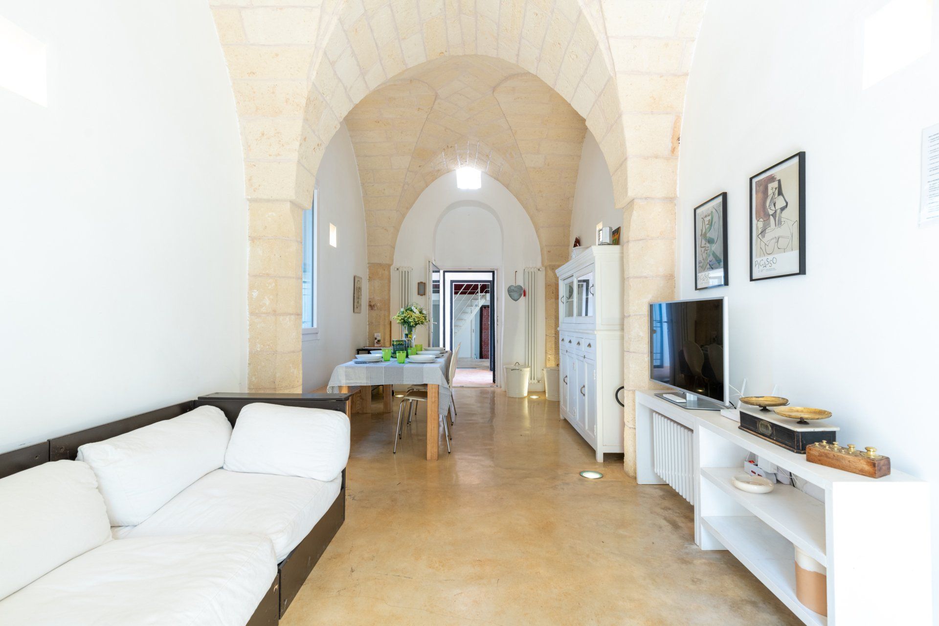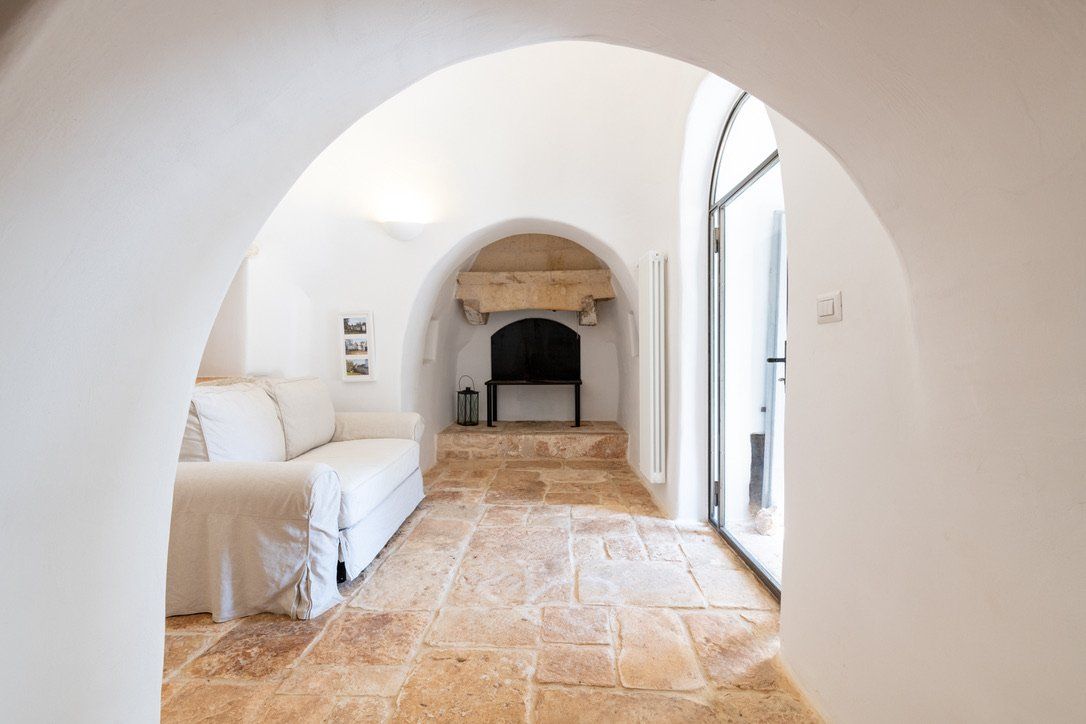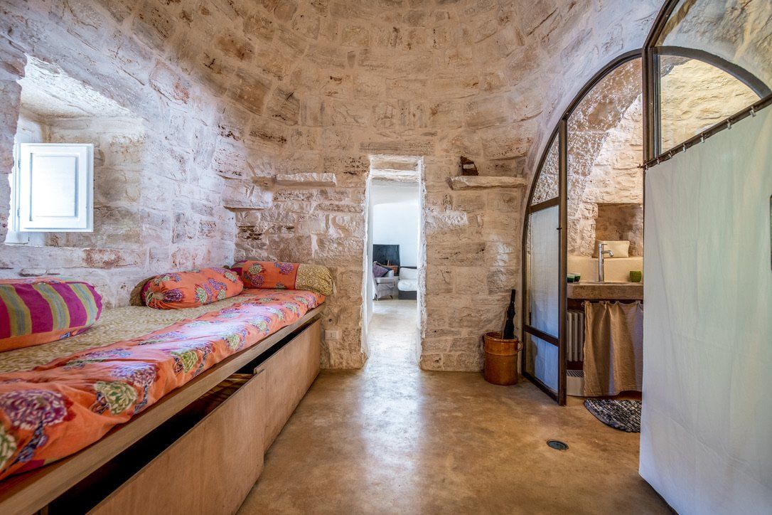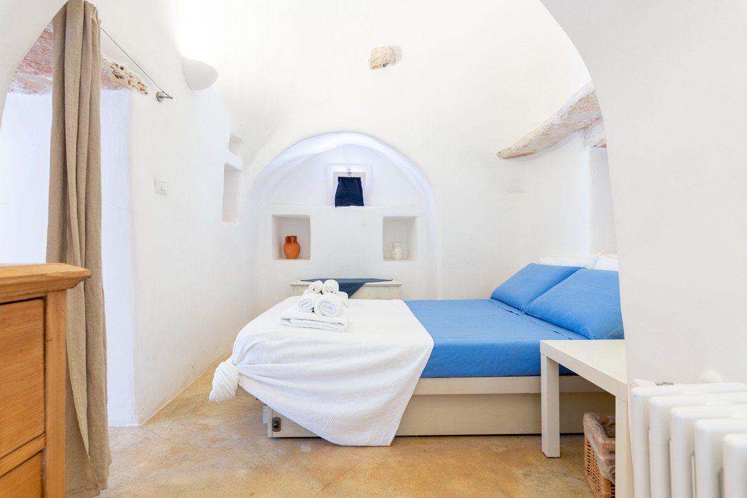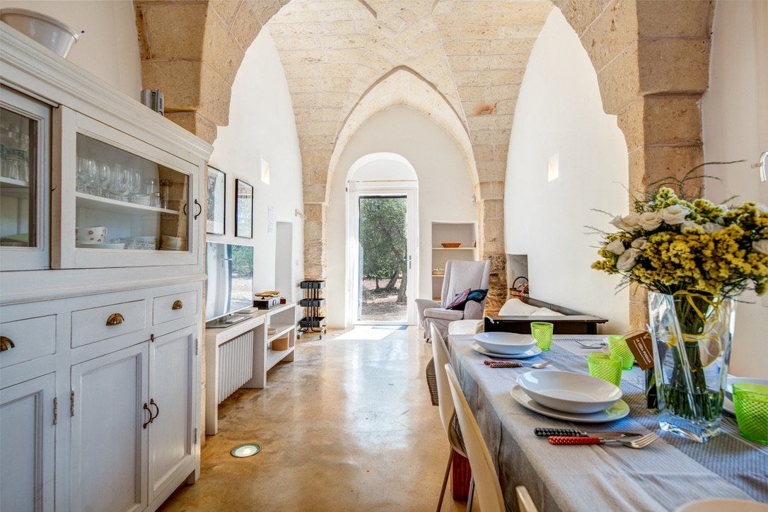 - een oude en gerenoveerde, bestaande uit een trullo met 6 kegels en een lamia met een sterrenplafond, een steenoven (bruikbaar) en een grote externe berging; dit deel omvat een slaapkamer met tweepersoonsbed, een slaapkamer met een eenpersoonsslaapbank (120×200 cm), een studeerkamer, een badkamer met douche, wastafel, toilet en bidet, een kamer aan de voorzijde met een eenpersoonsslaapbank, een grote eetkamer en woonkamer met open haard, een grote rijk uitgeruste keuken (vaatwasser, elektrische oven, 5-pits gasfornuis, grote koelkast met vriesvak, enz.)