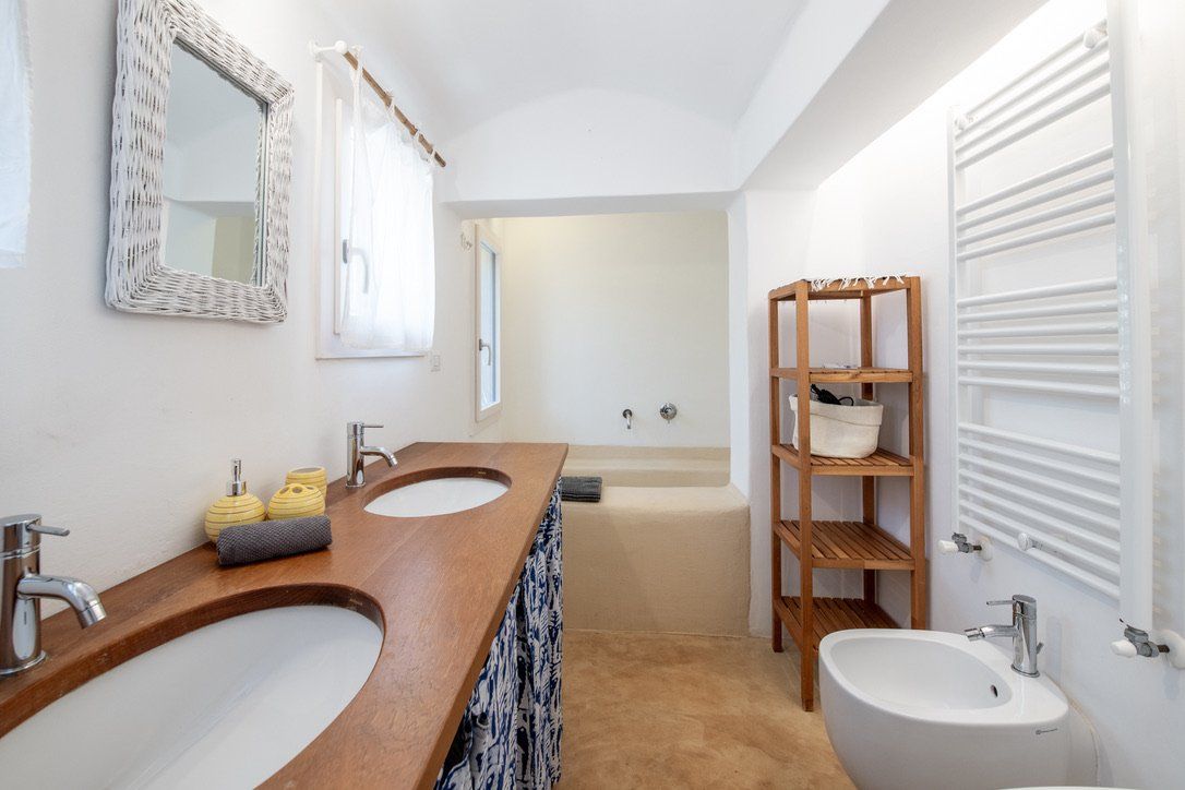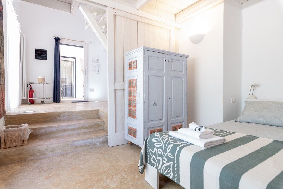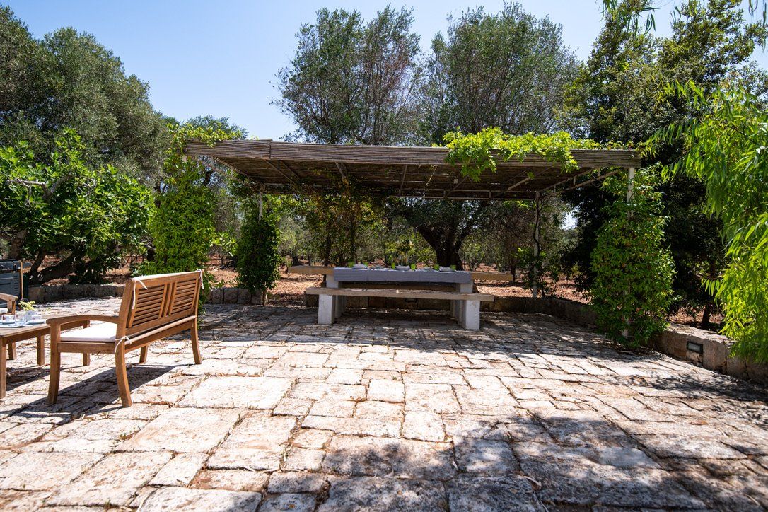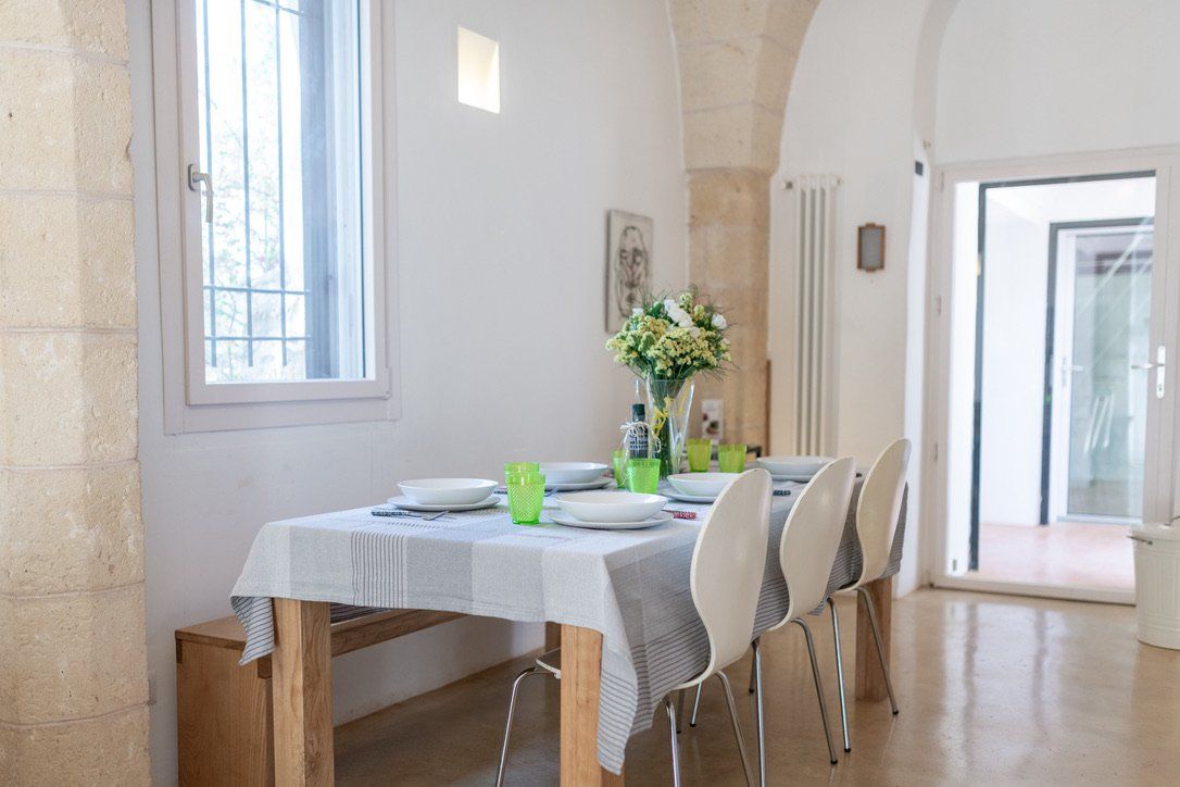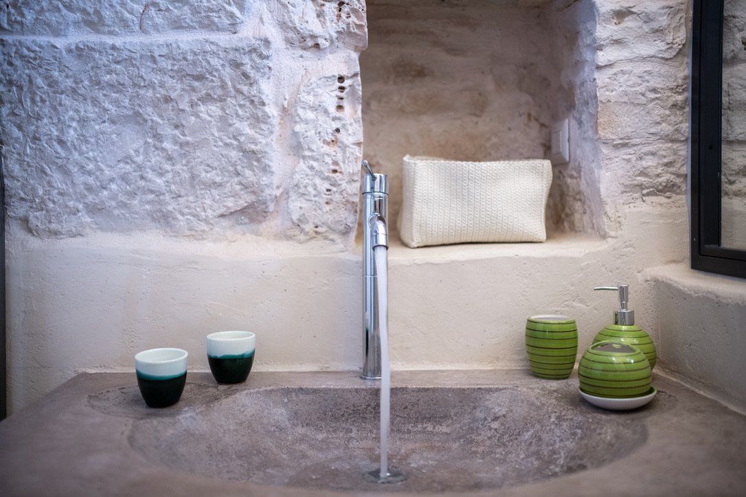 - een oude en gerenoveerde, bestaande uit een trullo met 6 kegels en een lamia met een sterrenplafond, een steenoven (bruikbaar) en een grote externe berging; dit deel omvat een slaapkamer met tweepersoonsbed, een slaapkamer met een eenpersoonsslaapbank (120×200 cm), een studeerkamer, een badkamer met douche, wastafel, toilet en bidet, een kamer aan de voorzijde met een eenpersoonsslaapbank, een grote eetkamer en woonkamer met open haard, een grote rijk uitgeruste keuken (vaatwasser, elektrische oven, 5-pits gasfornuis, grote koelkast met vriesvak, enz.)